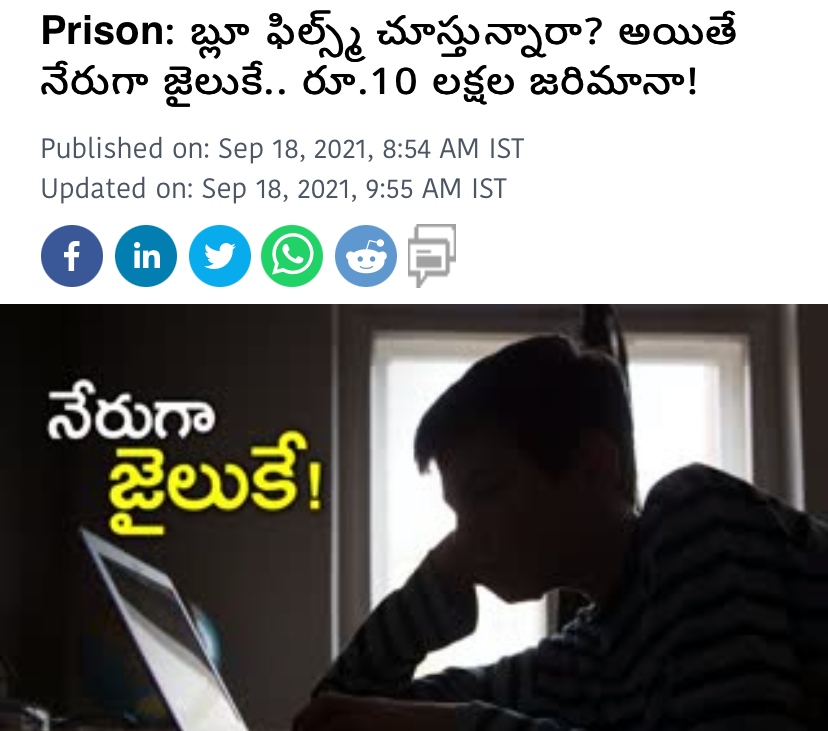 వాటిలో ఒకటి సెంట్రల్ హోమ్ డిపార్ట్మెంట్ ‘నీలి చిత్రాలు చూస్తే జైలుకు పంపి పది లక్షల జరిమానా’ విధించటం అన్న నిర్ణయం తీసుకోవటం. ఈ రూల్ పాస్ చెయ్యటానికి కారణం- చిన్నారులు, మైనర్లపై అత్యాచారాలూ, అకృత్యాలు పెరుగుతుండడంతో కేంద్ర హోంశాఖ ఈ అంశంపై దృష్టి సారించిందంట.