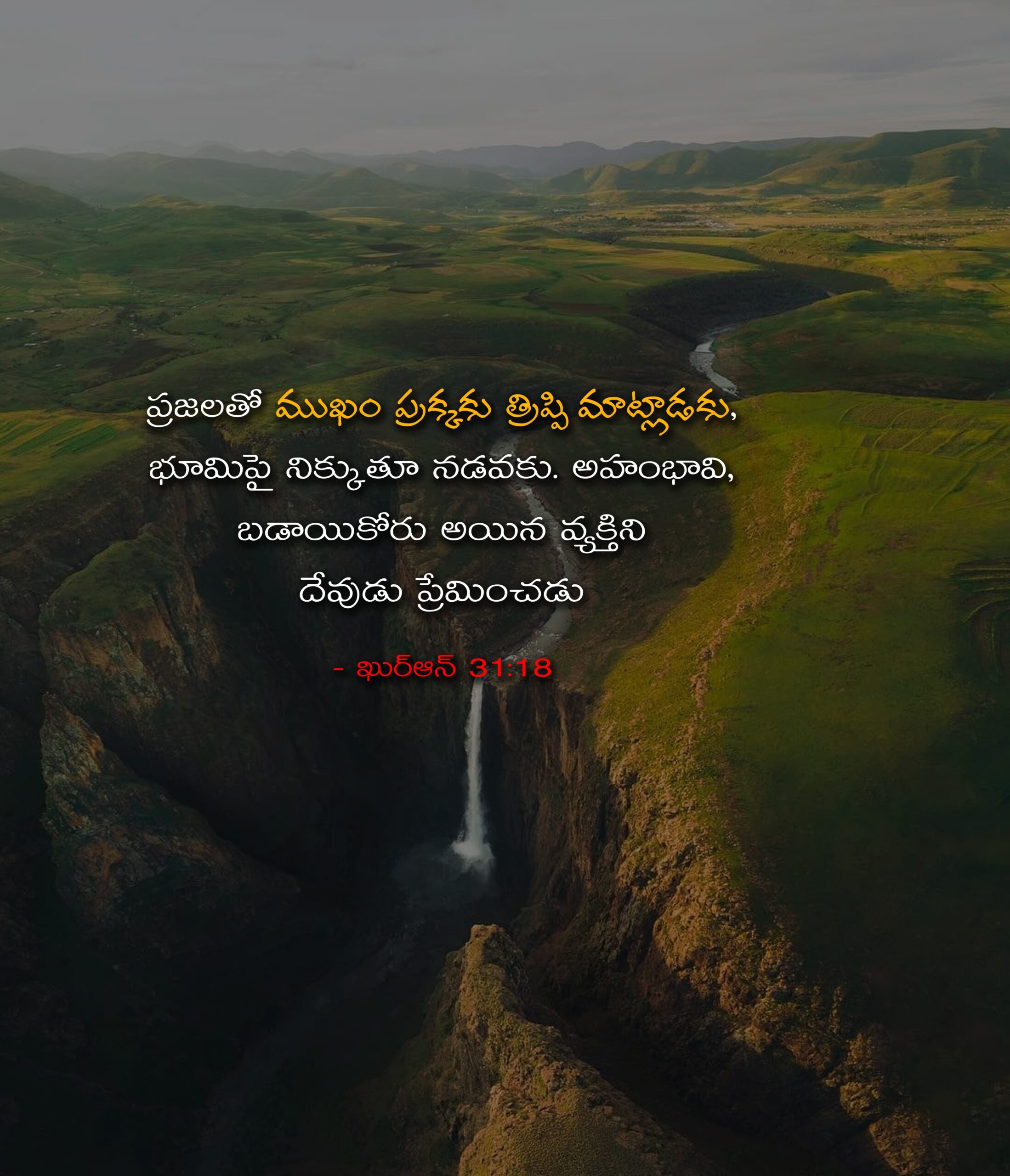 “సర్వేశ్వరుడైన దేవుడు ఇష్టపడే నిజమైన దాసులు ఎవరంటే నేలపై అణకువతో నడిచేవారు” -25:63 అని ఖురాన్ మరొక చోట చెబుతుంది.