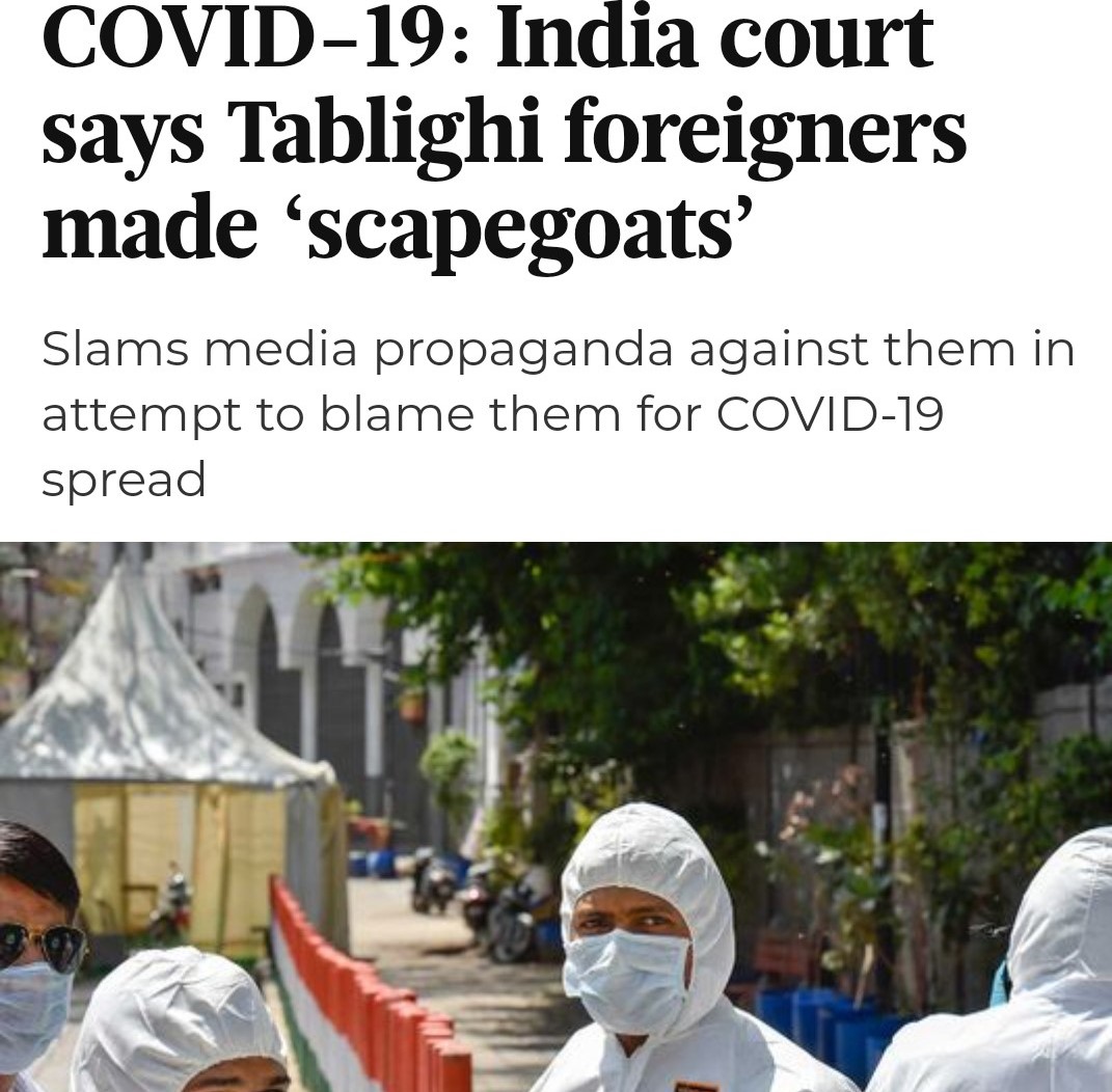 తబ్లిగీ జమాతీయుల విషయంలో అనవసర ప్రచారం జరిగింది.. అనవసరంగా విదేశాల నుండి వచ్చిన తబ్లిక్ ముస్లిములను బలిపశువులు (Scapegoats) చేసారంటూ తీరా జరగాల్సిన చెడు ప్రచారం జరిగిపోయాక బాంబే హైకోర్ట్ ఇప్పుడు వారి తప్పేమీలేదని కేసు కొట్టేసింది.