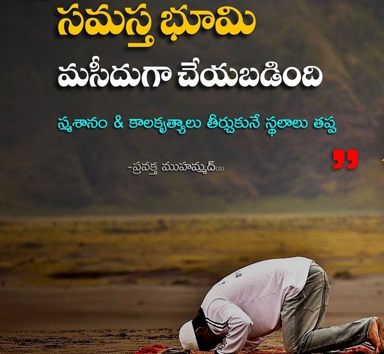 “సమస్త భూమి మసీదుగా చెయ్యబడింది. శ్మశానవాటిక మరియు కాలకృత్యాలు తీర్చుకునే స్థలాలు తప్ప” – (జామియత్ తిర్మిదీ 317, సహీహ్).