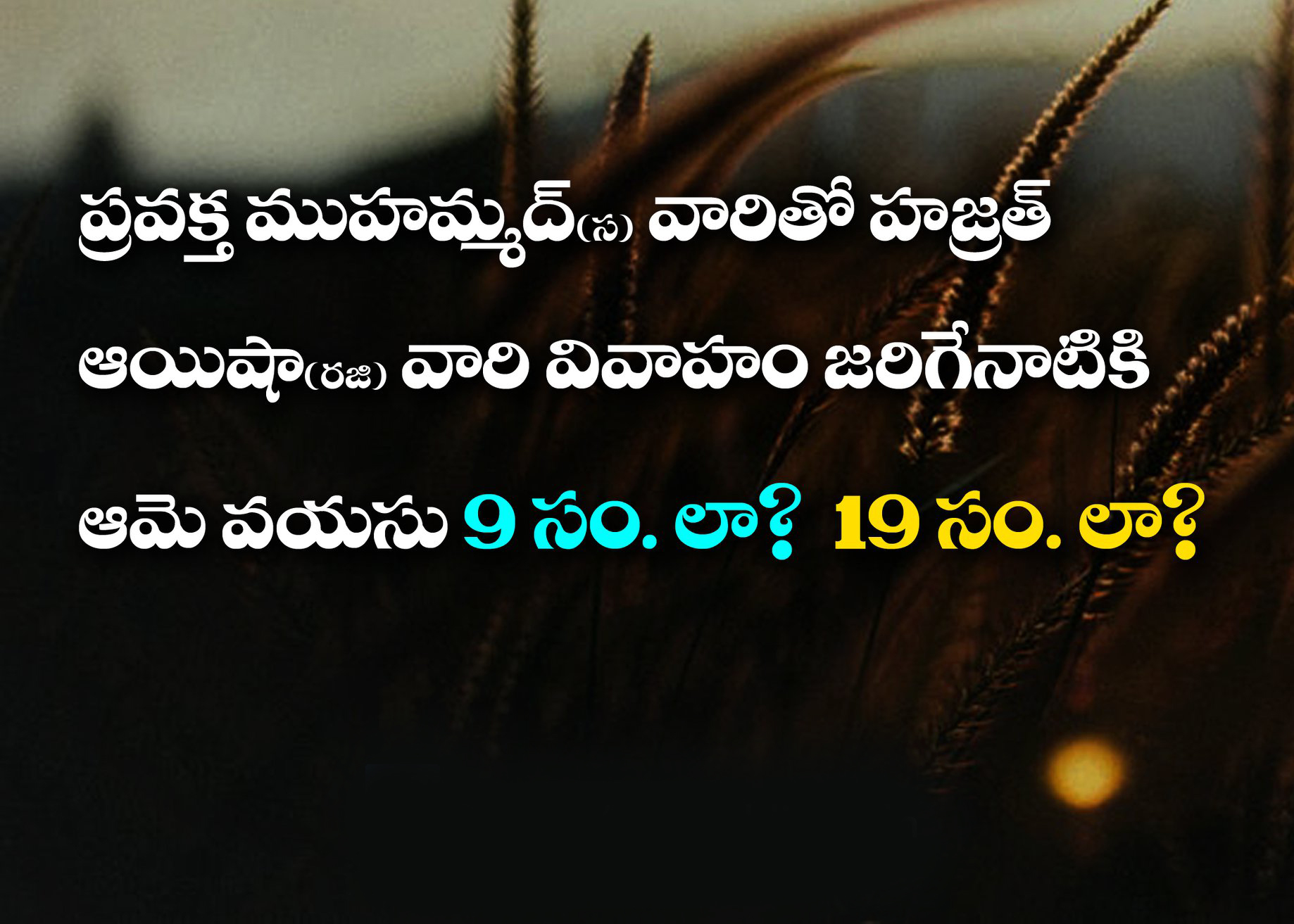 ప్రవక్త ముహమ్మద్ (స) వారితో హజ్రత్ ఆయిషా (రజి) వివాహం జరిగే నాటికి ఆమె వయస్సు 9 సం. లా? 19 సం. లా?