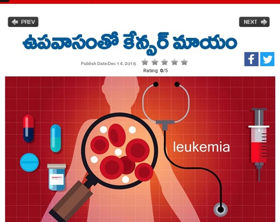 ‘సైన్స్ ట్రాన్స్లేషనల్ మెడిసిన్ జర్నల్’లో ప్రచురించబడిన తాజా పరిశోధనలో కేన్సర్ ట్యూమర్ కణాలు సాధారణ కణాలతో పోల్చితే ‘ఉపవాసం’ ఒత్తిడికి భిన్నంగా స్పందిస్తున్నాయని పేర్కొనటం జరిగింది.